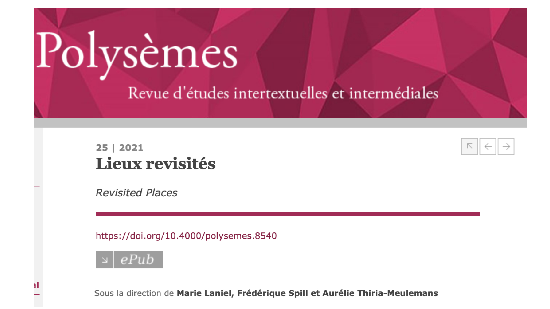 Polysèmes. Revue d'études intertextuelles et intermédiales, 25, 2021